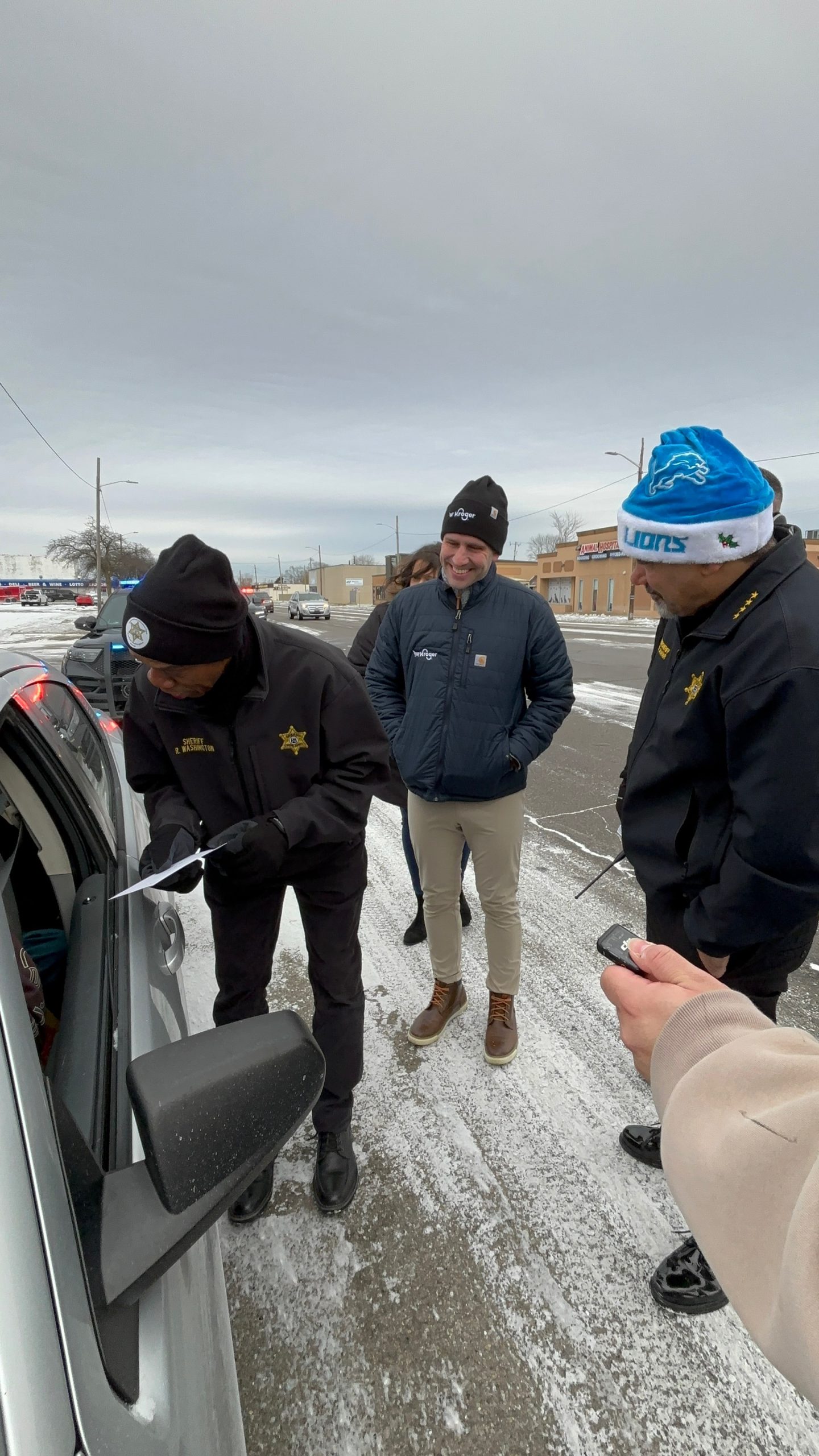 Through a partnership with Leaders Advancing and Helping Communities (LAHC) and Kroger, the Sheriff and Undersheriff Mike Jaafar took the WCSO on the road to gift unsuspecting drivers. This year deputies went Downriver to hand out the $250 Kroger gift cards. Local media tagged along to capture what we’ve dubbed “Santa stops.” Drivers were overwhelmed! Including one woman who teared up because she’d had such a rough year. If you get a chance, take a look at the dynamite stories WXYZ and CBS Detroit did, or catch it on our socials. FB: Sheriff Raphael Wahington, Insta: wcsoffice